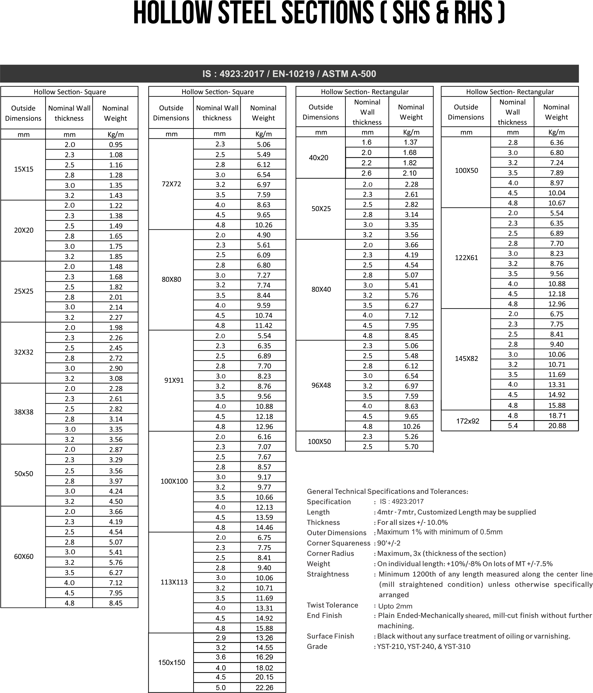 Technical Data for Hollow Section